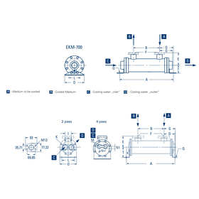 Cooler, sea water/oil, G 1 1/2" BSP, 29,3kW @ 150 l/m @ 50°C