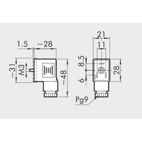 Connector for Series 70 coils (22 mm). DIN 43650 B-IND. Cable entry: PG9. Colour: Black. Variant: Standard.