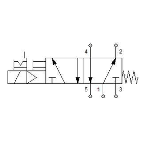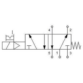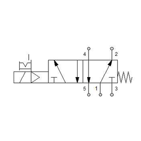 5/2 valve 1/4". Solenoid actuated direct acting (SO). Flow at 6 bar: 750 Nl/min (ΔP 0.5 bar), 1100 Nl/min (ΔP 1 bar).