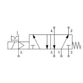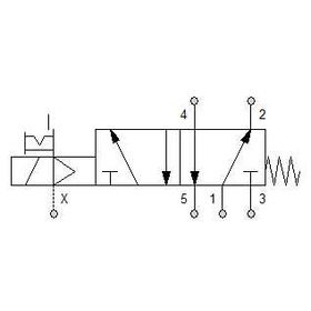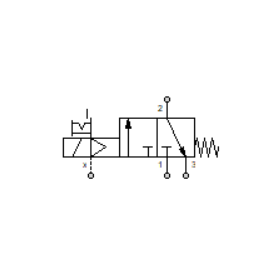 5/2 valve 1/8". Solenoid actuated pilot assisted (SE). Flow at 6 bar: 400 Nl/min (ΔP 0.5 bar), 550 Nl/min (ΔP 1 bar).