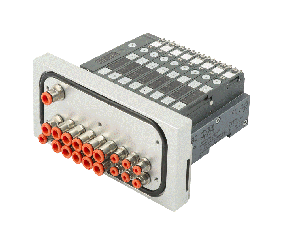 The island can be configured with a variety of special sections to achieve advanced pneumatic functions, and it operates on voltages from 10.8 – 31.2V DC