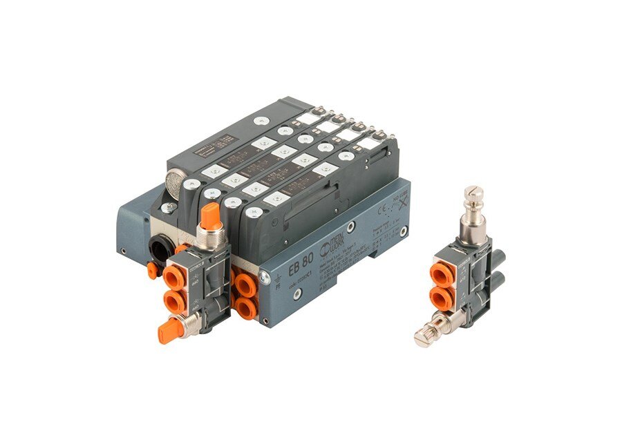 These can be selected with 2 different functions on the same module and pressed directly onto the EB 80 valve ports.